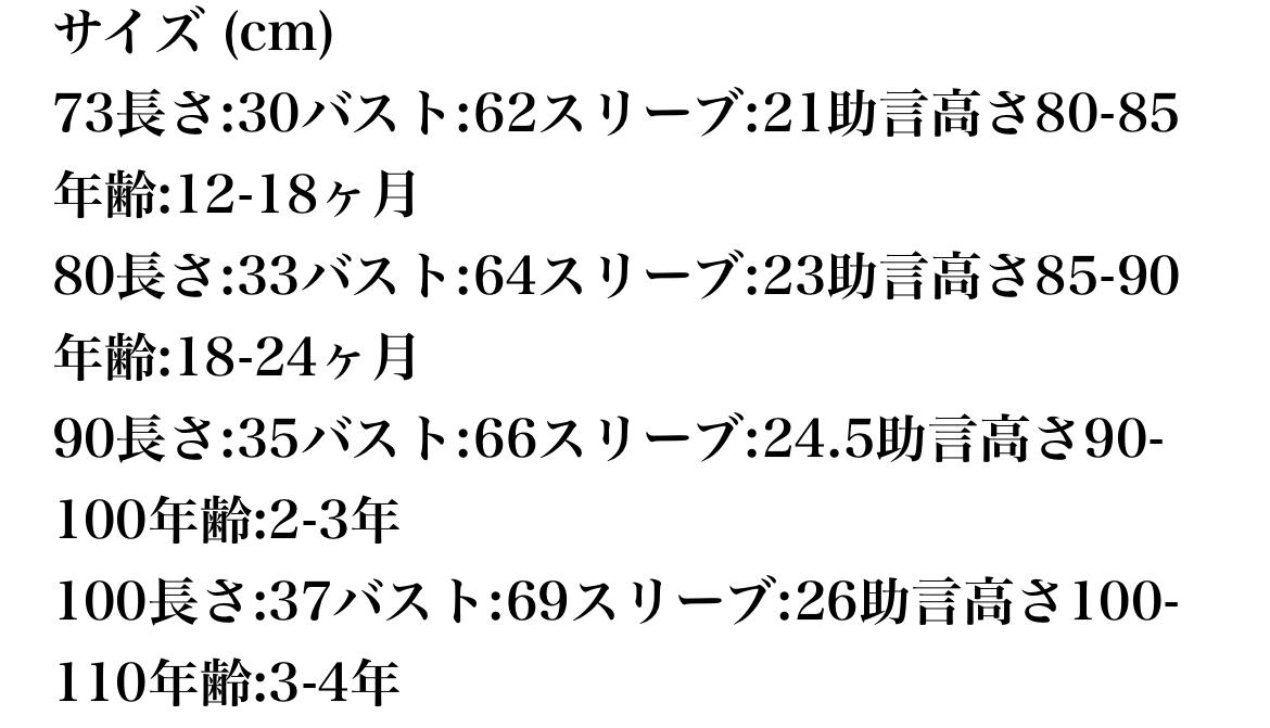 73 長さ30 バスト62 袖21 身長80-85 年齢12-18ヵ月
